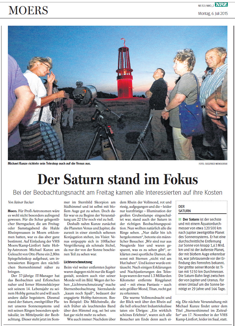 Moers - Tageszeitung NRZ aus Moers am 07. Juli 2015 -