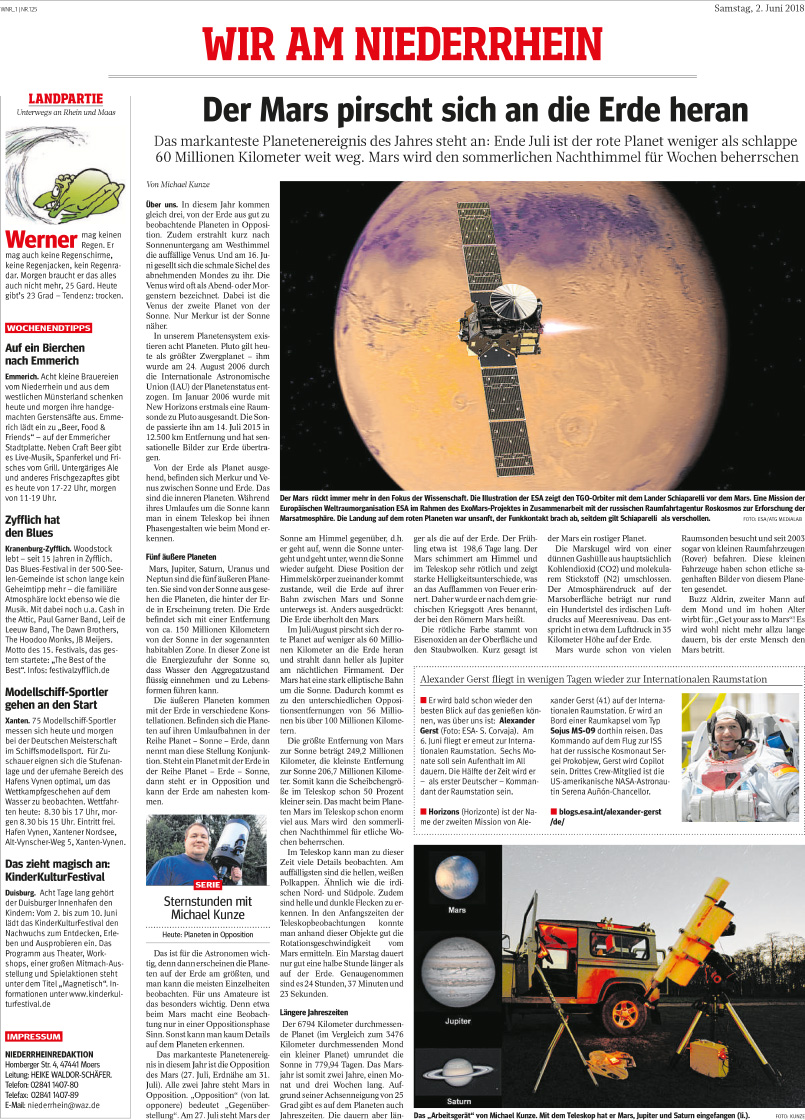 Moers - Tageszeitung NRZ am 02. Juni 2018 -