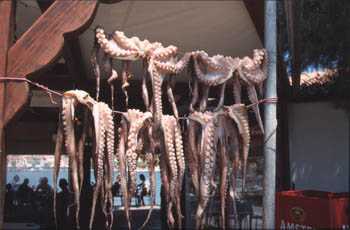 Spezialität auf Samos. Frischer Octupus. Oft kann man kleine Vertreter auch beim schnorcheln sehen.