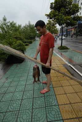 am Pudong International Flughafen eine Temperatur von 43° und eine Luftfeuchtigkeit von 85 Prozent. Das Schwitzen