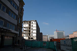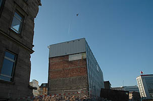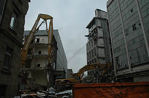 Abrissarbeiten entstanden. Das zweite zeigt eine Schneise im dem Haus, in dem früher die Stadtverwaltung zu Hause war. Die Schneise wurde