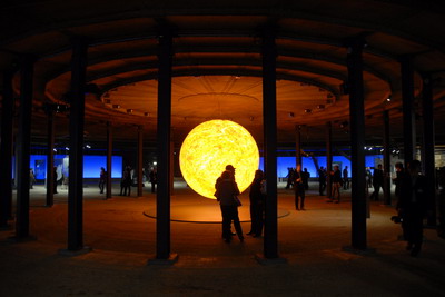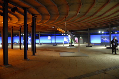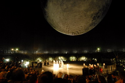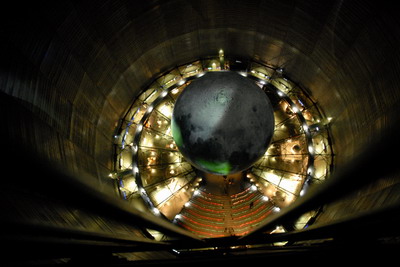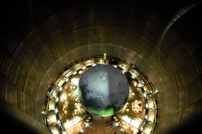 im Innenraum des Gasometers ein großer Mond zu sehen.