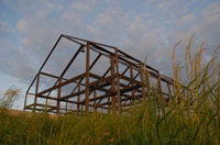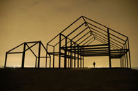 Hallenhaus bei Nacht Auf der Halde Norddeutschland in Neukirchen-Vluyn befindet sich ein Hausgerippe, welches als Hallenhaus